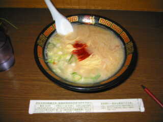 独自の店内システムを看板に、東京に進出した博多ラーメンの店です。 大江戸線の六本木駅上店とありますので、駅の真上かと思ったのですが、実際には駅出口から六本木交差点に向かって、50mほど歩いたビルの2階にあります。しかも、ビルのエレベータは使えず、屋外階段をとぼとぼと上っていく必要があります。 独自の店内システムとは、 ・ 席はカウンターのみで、隣とは板で、作業スペースとは赤いのれんとスダレでの仕切りられた、60cm四方くらいの空間でラーメンを食する(「味集中カウンター」と称する) ・ 仕切られた席は全体が見通せないので、入口のところに電光表示による空席案内板が設置されている ・ 味の濃さ、こってり度(脂の量)、にんにくの有無や量、ねぎ(白ねぎか青ねぎか)、チャーシューの有無、「秘伝のたれ」の量、麺のかたさが選択でき、これらをカウンター上のラーメン注文用紙に記入してスタッフに渡す(いずれも無料) ・ 替え玉などの追加は、写真のように箸袋が追加注文用紙となっており、これに記入して注文(現金払い可) というわけで、つまり、ひと言もしゃべらず、隣も気にすることなく自分だけの世界を構築できるというシステムです(@_@) |