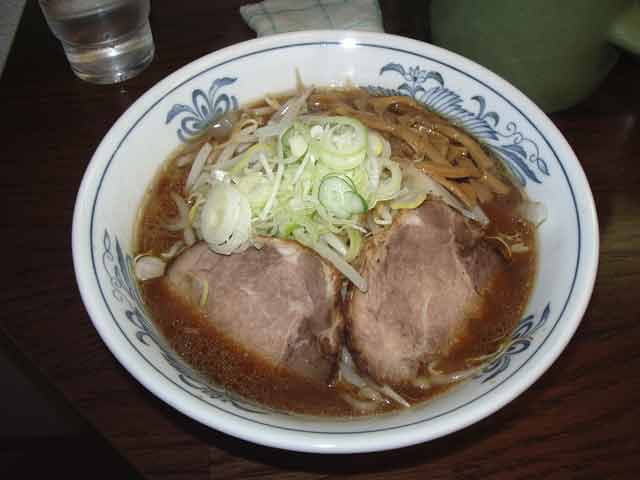 正油野菜ラーメン @800円 麺は、北海道らしく黄色みの強い中細強ちぢれ麺で、長さも短い、チュルチュルとした食感 量は、120g程度か スープは、濃い茶色濁のトリガラ魚しょうゆ味で、結構ダシと塩味が強いが、化調も効いている トッピングは、色も濃く強い味付けのホロホロとくずれる肩バラチャーシュー2枚、野菜はもやしとタマネギの炒め 炒める油がサラダ油系なのはいささか残念 ということで、写真でもわかるとおり、まさに郷愁を誘うような旭川ラーメンそのものを体現している |