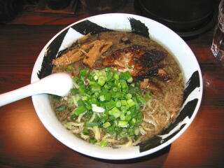 店内は、L型カウンター12席でかなり広いのですが、長手カウンター客席の真ん中あたりになぜか柱が出っぱっており通り抜けることができません。 なので、席運が悪いと、正面入口から入って券売機で券を買っても、いったん外に出て別の入口から入り直すことが必要となります。 湯切りについては、深ザルでゆであがった麺をあげると、、いったん大きく振り下ろして湯切りをしますが、そのあともザルからボタボタとお湯が落ち続けています。そのあと、さらに2〜3回小さく湯切りを加えるのですが、やはり湯が切れているようではありません。 つまり、カッコだけの湯切りパフォーマンスというわけです。「もちもちの木」にでも行って、湯切りの研修を受けてはどうでしょうか(^^) また、チャーシューは注文を受けてから切るのですが、中華包丁でバンバンと音がするほどの力で切るので、まな板から肉片がテーブルに飛び出したりします。さすがに、テーブルに飛び出した肉片はラーメンには入れないようですが。 つまり、全体にワイルドなイメージを出そうとしたオペレーションのようですが、ちょっと問題もあるようですね。 オペレーションついでに言うと、満席状態で食べているお客さんはたったの4人で、麺の茹で工程がクリティカルパスとなっています。よけいなお世話かもしれませんが、ゆで麺機ををもう1台入れるべきではないでしょうか。 どこかのラーメン店と違って、行列をあえて演出するというようなことは考えてないのでしょうから・・・ |