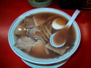スープは、肉の味がしっかりするしょうゆ味で、見た目ほど濃い味付けではなく、脂っけもほとんどなし