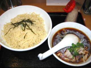 つけだれは、透明茶色のとんこつ魚介系しょうゆ味で、タマネギが煮込まれている