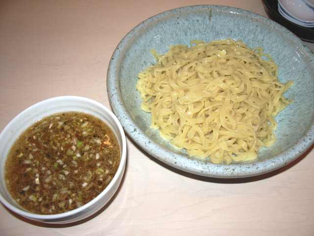 極太塩つけめん大 @800 麺は、やや茶色っぽい小麦色で透明感もある、平打ち極太直麺 一見アルデンテのタリアッテレ風で、食感もツルツルもちもちした硬めの仕上がり 量は300g、自家製 つけめん大で300gというのは、他店では並盛り程度、池袋ならこのC/Pではとてもやっていけないと思うのだが つけだれは、うす~い茶色ほんの少し濁のトリガラ魚系塩味でホタテの香りがするもの 無化調のためかパンチはなく、やさしい味わいだが塩味は結構強め 表面に脂、唐辛子少々、ネギはきわめて細かなみじん切り 底に、チャーシュー細切れ少々、ホタテ貝柱のダシガラ少々 |