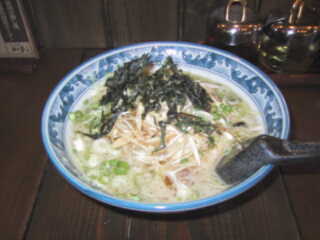 ねぎ拉麺(こってり) @800 麺は、中くらいの太さの直麺 スープは、しょうゆ味ではあるがやや薄味で、ホタテやカニもだしとしているため、その甘みが感じられる ただし、くさみは全くない 写真の黒いふわふわしたものは、岩のり