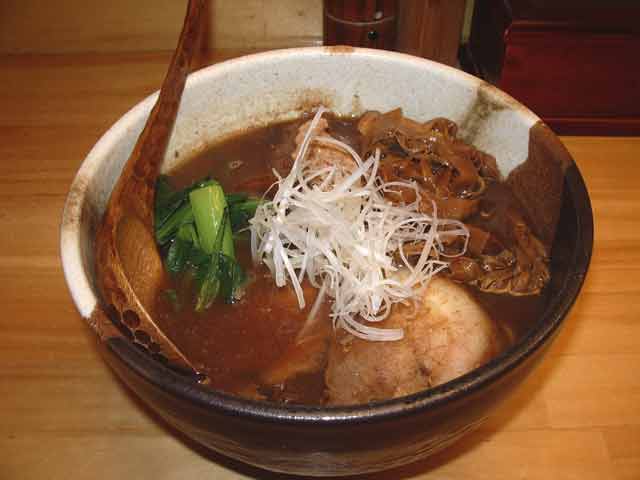 いまどきのラーメンの主流に、とんこつ魚系こってり魚粉というながれがありますね。まあ、どこにいってもそればっかりという時代は過ぎつつあるようですが。 そうした味の源流の一つが「田ぶし」であることはまちがいないでしょう。魚油という手法を取り入れたのも「田ぶし」です。 その「田ぶし」の元店長が独立して開業したのがこのお店です。 ラーメン激戦地である高田馬場でも、こうした味の流れが少ない西口側に立地しているところはさすがです。 2006年12月開店 新宿区高田馬場4-17-17 1100-1430、1700-スープ切れ終了(2100頃) 日休 高田馬場駅早稲田口から早稲田通り南側歩道を西へ。郵便局の先、早稲田通りと細い道との三叉路を、左手前方向に回り込むとすぐ。 |