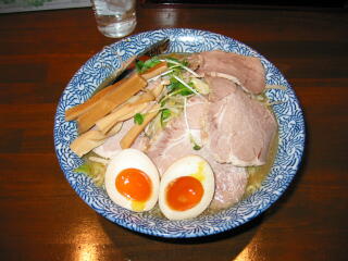 店内は、かなり広く、しかも大きなJ型カウンターのみなので、人口密度は相当低い、その意味では贅沢な造りです。 店主は、そもそもコンビニ弁当会社などを経営している人だが、ラーメン好きが高じて、大成食品「麺彩房」で修行。この店を立ち上げたといいます。今や、会社のほうは人任せで、自身はラーメンに打ち込んでいるそうです。脱サラならぬ脱社長(脱してはいないのだけどな)ですかね。うらやましいような、はたまた、よくやるよというような(^^) でも、飲食店起業家にありがちな、すぐに大きく経営したがるというんじゃないところは、いいですねぇ。 麺はもちろん大成食品製。 周辺に高レベルのお店がないということもあるのでしょうが、お昼時はかなりの行列ができるので要注意です。 |