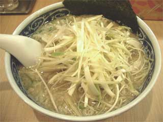 ねぎらーめん @800円 麺は、白めの黄白色で透明度が低く、かん水も少ない冷や麦風とも感じられる中細直麺 量は、130g程度か スープは、とんこつやや濁塩味で、臭みが全く感じられないもの 背脂は浮いてはいるがあまりしつこくはなく、塩辛さもほとんどないので、全部飲み干せるほど軽い感じがする トッピングは、大ぶりの肩バラチャーシュー1枚、やや脂が強いメンマ、白髪ネギは辛味はあるのに赤くない不思議なもの 全体として、サッパリしつつも、十分な満足感がある |