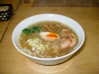 | カウンタのみ6席で、3人も入れば窮屈になるほどの小さな店です。柱には、ボンボンと鳴る柱時計が掛かっていたりして、ちょっと落ち着ける雰囲気です。 夜の業態は、おにぎりの店だったのですが、いつの間にかラーメンも出すようになりました。 店主の実家はそばやという情報もあり、麺にはこだわりを感じます。スープは、まだまだという水準ですが、研究熱心な店主のことですから、だんだんよくなるのではないかと期待しています。 地酒も置いてありますので、ちょっと飲んで仕上げにラーメンということも・・・ |