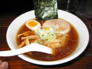 スープは、非常に澄んだしょうゆ味だが、表面を覆うラードがかなりの量あり、こってりしている