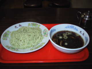 | 目白で丸長を知った私としては、ちょっと期待はずれですが、そこらへんのつけ麺と比べるとあきらかにおいしい麺です。他の丸長との比較はこちらをどうぞ。 赤いお盆は、丸長カラーを意識したものでしょうが、全体に暗い色調の店内では、実によく映えます。 ところで、壁に大書されたメニューの中には「ざる中華」という品がありました。はたしてつけ麺とどう違うのか、次回は「ざる中華」に挑戦だ。 |