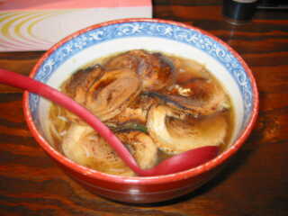 大きめのバラ肉ラウンドの炙りチャーシューが5枚のるが、かなり多めの脂が焦げたにおいだけが強く感じられてしまうので、脂の嫌いな人は普通の祖柳麺にしたほうがいいかも