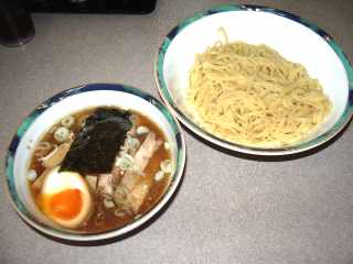 麺よりかなり先に出されるつけだれは、茶色濁のとんこつ魚系しょうゆ味で、酸味、辛味は少々の無化調だが、塩味がきつめで、味濃いめが好きな人向き