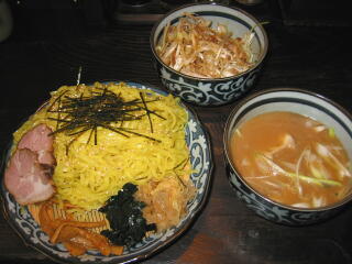 つけダレは、うす茶というか黄土色で濁の、とんこつ白湯しょうゆ味で、辛みや酸味はなく、またしょっぱさも強くないので、インパクトには欠けるが、十分な旨みは感じられる