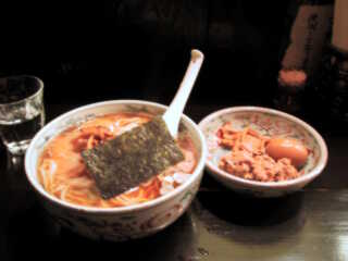 この別皿の肉はなんだかほぐしたような感じで、チャーシューのくずではないかと勘ぐってしまいますが、実はちゃんとしたものなのです。しかし、とあるネットで、連れて行った女の子に「キャットフードかと思った」と言われたというの書き込みを見ました。うーむ、言われてみればそう見えないこともないです(^^ゞ