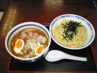 スペシャルつけめん+大盛り @1000+0 麺は、黄色みの強いやや細めの平打ち麺で、弾力の強いもの つけダレは、濁ったやや甘めのこってりしたもので、魚介系と世評されるがそれほど強い魚介の香りはしない 写真のとおりとてつもなく大きな丼で供される トッピングは、チャーシュー、半熟玉子、メンマ、わかめ チャーシューは、肩ロース肉の煮豚で、厚み1cmほどのこれも巨大なもの
