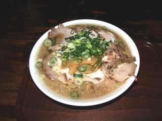 つけだれは、焦茶色透明の濃厚なとんこつ魚系しょうゆ味で、表面に厚さ5mmほどもある脂の層があり、その上に固形のカツオ練り物が浮いている