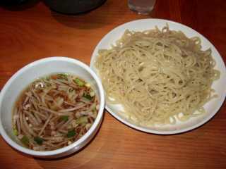 つけだれに、ゆでもやし少々、モモチャーシュー1枚