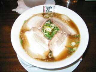 麺は、角断面透明黄色の細直麺で、固めに茹でられているが、食べている間にのびてゆき、最後はかなり柔らかくなってしまう