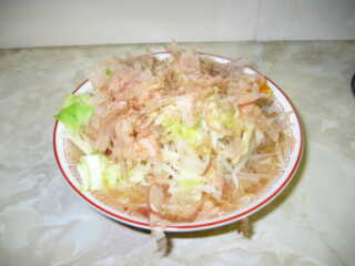 全体に二郎イメージのラーメンです。ネットではあまり似てないという評価もあるようですが、実は店主は相当のジロリアンといいます。「らーめんは麺が命」と書いた紙が貼ってありますが、麺は自家製ではなく三河屋という製麺所製。