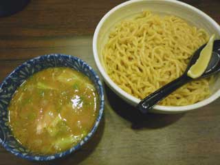 つけだれは、茶色強濁のとんこつ魚粉しょうゆ味で、魚粉は鰹節、とんこつダシの味が濃厚なもの