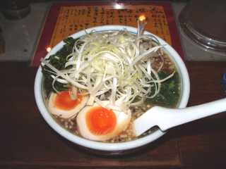 大きな木張りスパンドレルの看板、大きくて背も高い木張りの扉、大きなガラス張り壁面の外観は、一見カフェのような現代和風のデザイン。 扉は、引き戸かと思ったら、両開き、しかも道路側に開くというびっくりもので、開けようとするとちょっとまごつきます。 しかも、引くときにずいぶん重いので、いかにも重厚な扉という印象ですが、その重さは、実は扉の重さではなく、キッチンの吸排気バランスが取れていないことによるものです。 その扉をくぐり抜けて店内に入ると、L型カウンターのみ11席ですが、見通しのよい設計や広いガラス窓のためか広く見えます。スタッフは2人。 店主は、恵比寿時代の「旨いらーめん喰堂 えにし」で修行したそうで、味の構成も似ているところがあります。 えにしゆずりの濃い味わいで、苦学生の財布を開かせていくに違いありません。 |