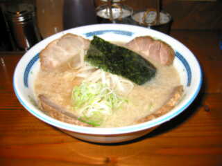 チャーシューらぁ麺 @800 麺は、細めの直麺 スープは、濃い茶色でとんこつしょうゆ風のとろみの感じられるもの 材料として豚の全部位を使っているという チャーシューは、かなり分厚いものだが、十分煮込んであり柔らかい、というか柔らかすぎ、煮すぎといった方がいいかもしれない