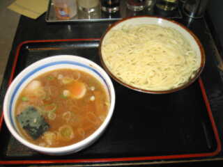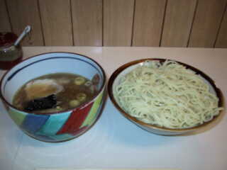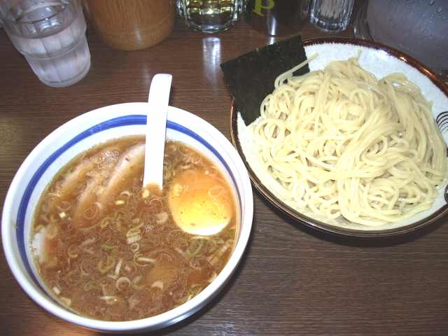 つけそば @480円 中野駅南口の丸井わきの3差路角にある。なんとなく日本そば屋風の店構え。 大勝軒つけそば発祥の店だが、上述のとおり、いまは代々木大勝軒の支店である。 ほとんどの人がつけそばを頼むが、ときにラーメンを食べる奇特な人がいるという。つけそばのつけだれから考えても、かなりあっさりしたものと予想されるが、はたしてどんな味なのか?しかし、つけそばをやめて、ラーメンを食べる勇気はでてこないなぁ。 麺、つけだれとも、TAISHOKEN系列の中では、あまりインパクトがない方で、発祥の店として期待しすぎるとイケマセン |