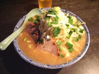 写真のように、ニラ、長ネギははみじん切りが上から散らされるが、その下の基盤の大きさに圧倒されて目立たない
